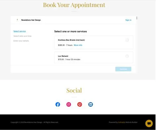 An attractive website was at the top of Chanesa’s list, and she aimed to integrate the booking system she already uses into her new site, ensuring an easy transition for her existing clients.